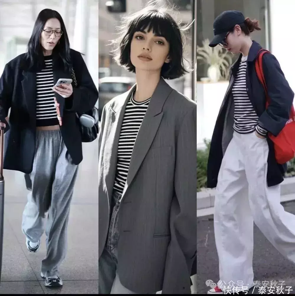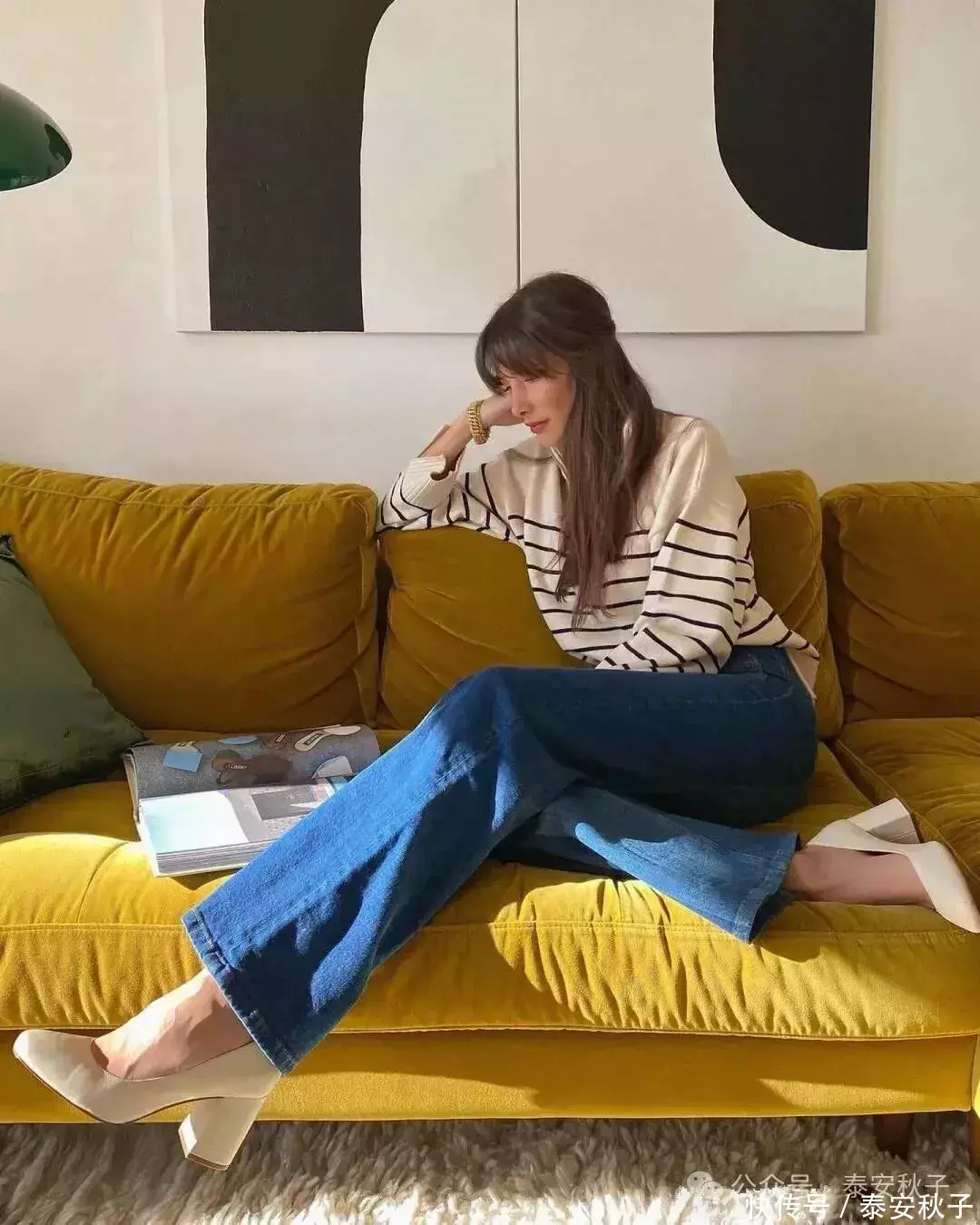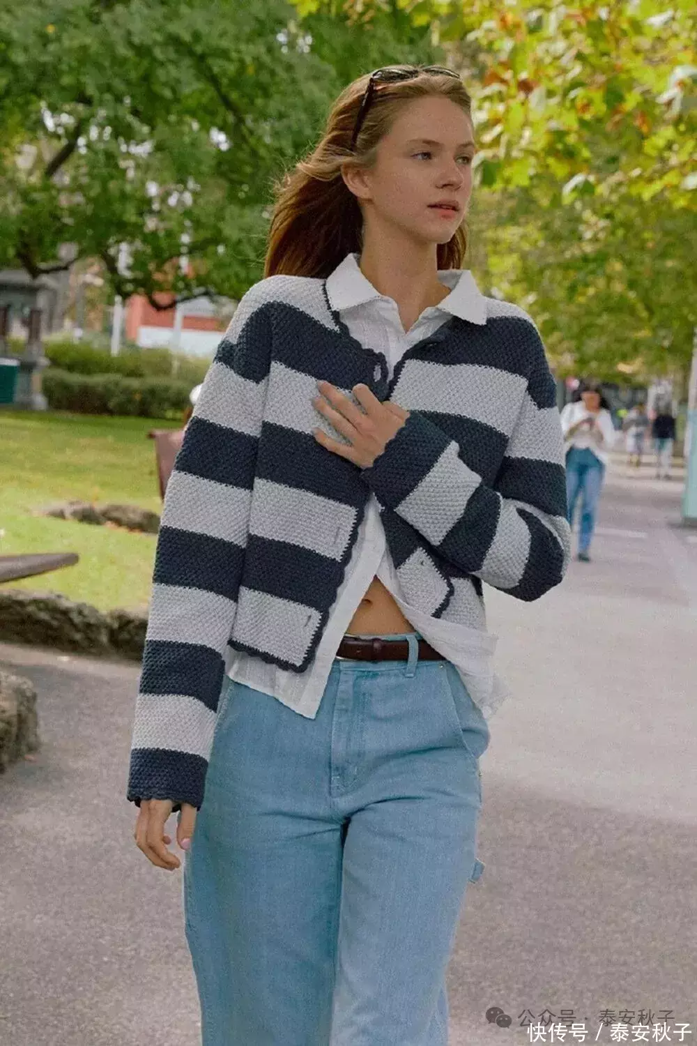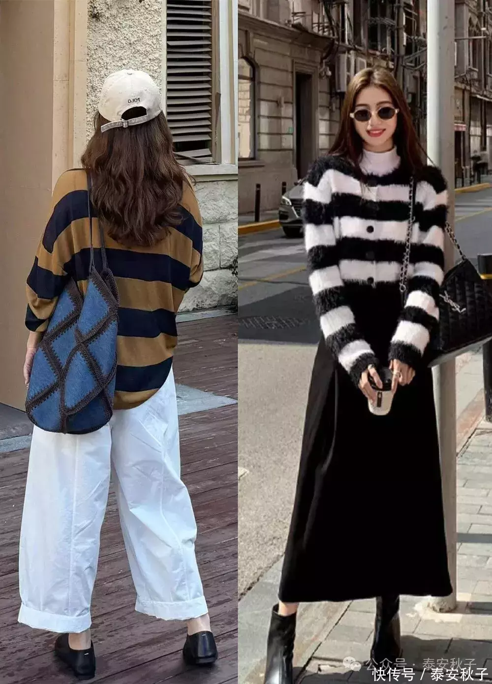 如果你是身材高大纤细,且有敢于展现自我的女生,秋天里可以选宽宽大大的粗条纹衫来穿,可以让你的造型瞬间多出一丝随性、洒脱感。像这件宽松版的灰白粗条纹衫,十一出游时穿着特别舒适自在。搭配米白色的休闲裤,就会给人一种惬意慵懒的感觉,也太时髦了吧。